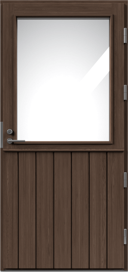 Kvistfritt limmat ramträ. Kraftig karm av kvistfri furu, laserad till samma nyans som dörrbladet. Tröskel av oljelaserad björk och aluminium, 25 mm hög. Modulstorlekar 9/10–20/21.