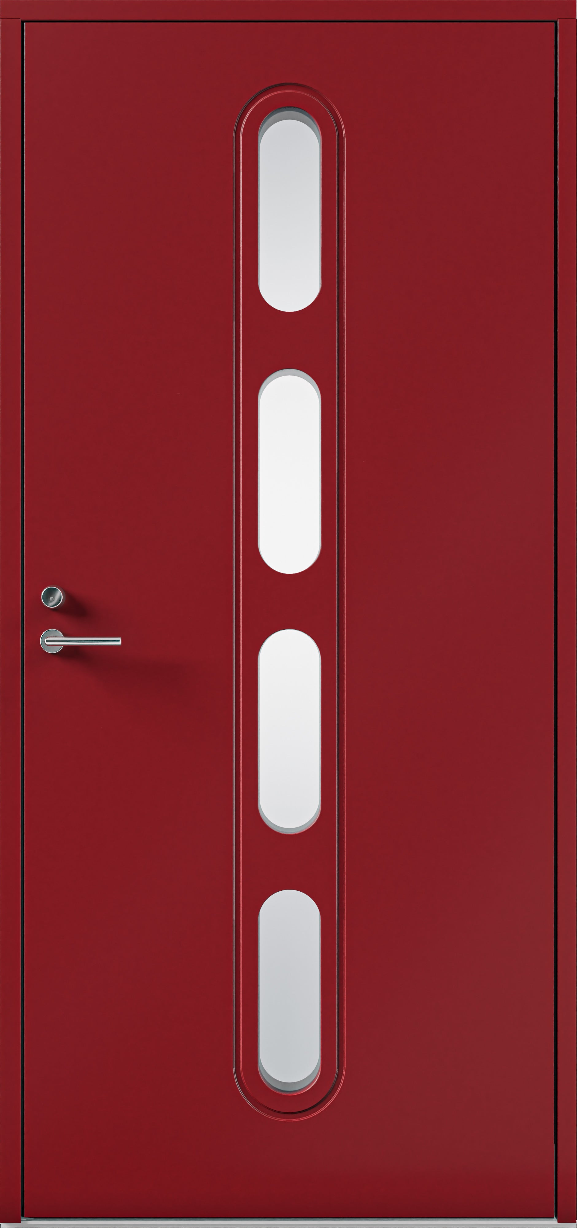 | Dörrblad | Inga glaslister, aluminiumförstärkt HDF-board, limmat ramträ, tjocklek 86 mm (Thermo). |