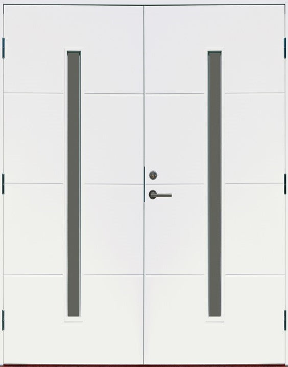| Dörrblad | Ramverk av furu, dubbla 0,45 mm aluminiumplåtar och 3,2 mm HDF-board. |