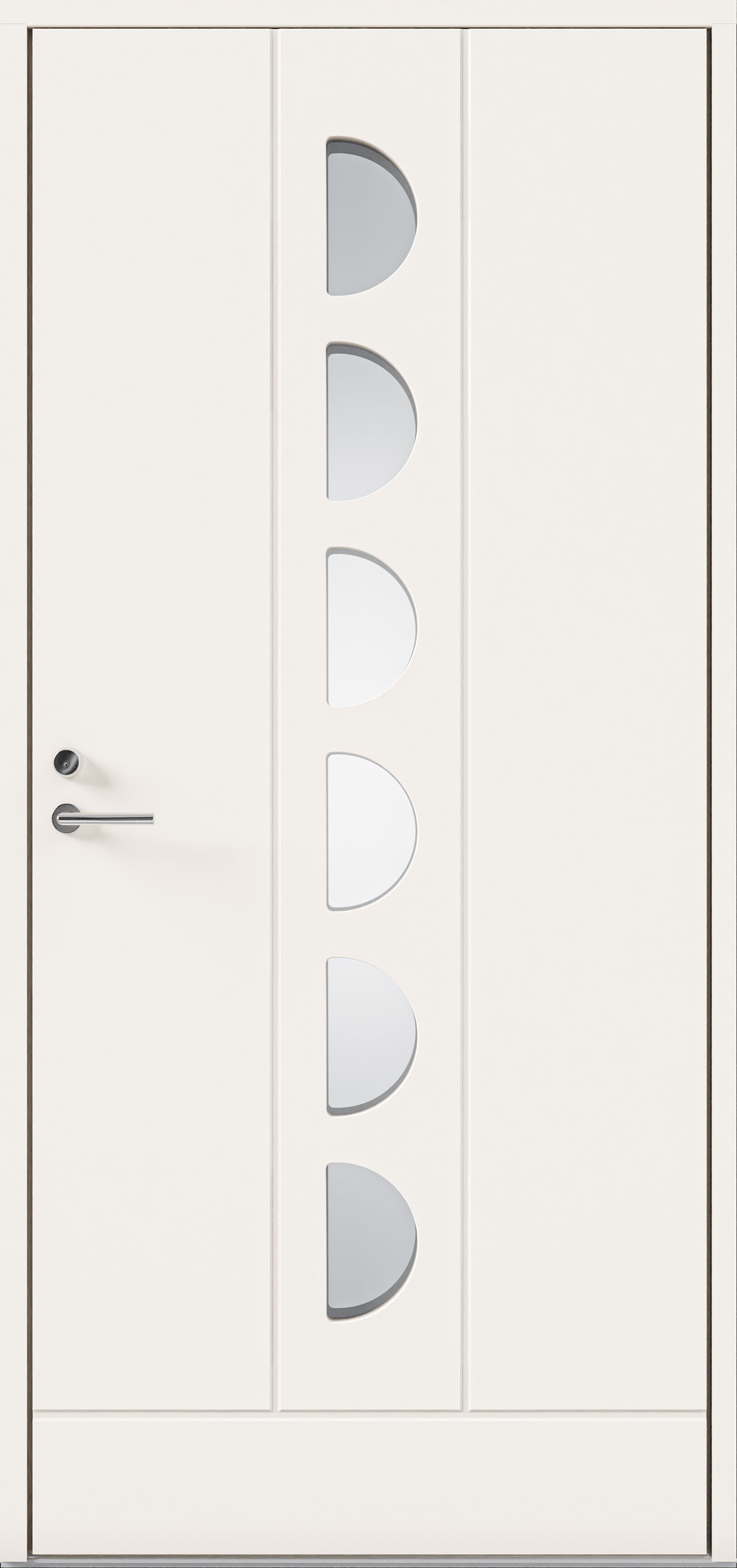 | Dörrblad | Inga glaslister, aluminiumförstärkt HDF-board, limmat ramträ, tjocklek 86 mm (Thermo). |