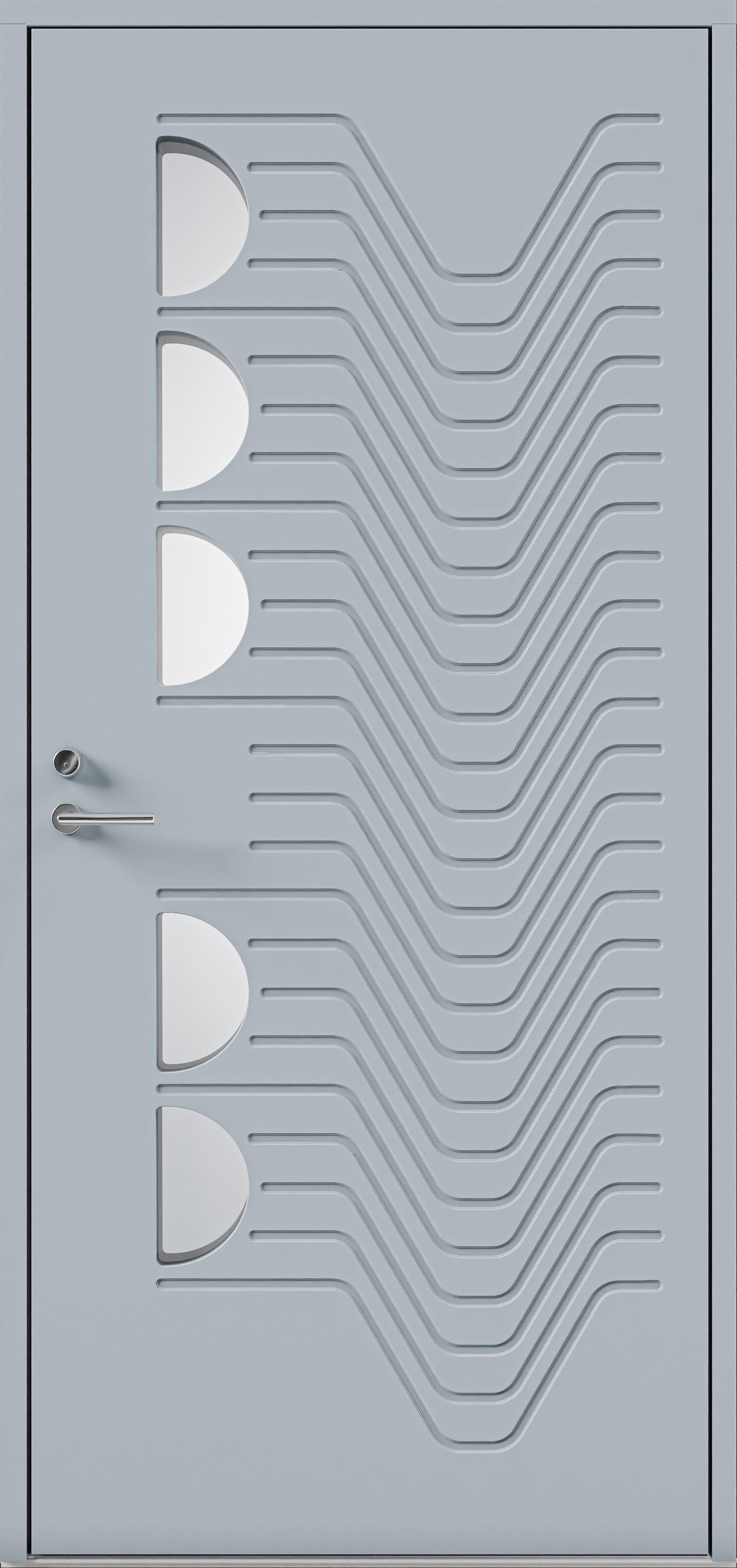 | Dörrblad | Inga glaslister, aluminiumförstärkt HDF-board, limmat ramträ, tjocklek 86 mm (Thermo). |